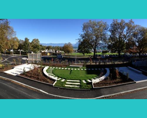 Au rond-point suivant, prendre la troisième sortie, Parking entre le restaurant de la Véranda et le Cimetière de Morges.